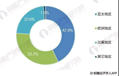 亞太地區為全球最主要的光纖激光器市場,由于亞太地區集聚了全球重要的汽車業、傳統制造業和半導體行業,對光纖激光器需求非常旺盛;2017年,亞太地區光纖激光器市場規模占全球42.9%的市場份額。歐洲為全球第二大光纖激光器市場,2017年歐洲地區光纖激光器市場規模占全球33.2%的市場份額。此外,北美洲占22.6%的市場份額。