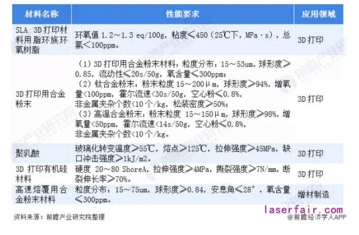 2019年12月,工業和信息化部關于印發《重點新材料首批次應用示范指導目錄(2019年版)》,其中公布了6項與3D打印相關的重點新材料,分別為SLA 3D打印材料用脂環族環氧樹脂、3D打印用合金粉末、聚乳酸、3D打印有機硅材料和高速熔覆用合金粉末材料。