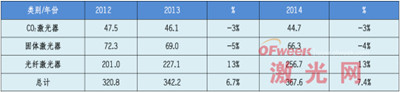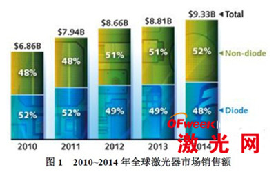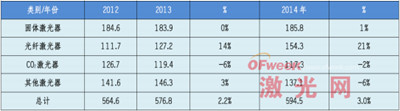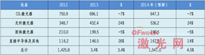 2014年度,預計全球激光器市場銷售額較2013年會增長6.0%,達到93.34億美元。