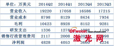 目前,約有30%的激光器屬于光纖激光器,而且,光纖激光器行業(yè)仍在繼續(xù)搶占傳統(tǒng)激光器在制造領域的份額,尤其是切割與焊接應用。相比傳統(tǒng)激光器,光纖激光器提高了通用性,降低了能耗,減少了運行與維護成本。IPG 2013年營業(yè)收入為6.48億美元,較2012年5.62億美元增長15.2%;凈利潤為1.56億美元,較2012年1.45億美元增長7.43%。其中,IPG高功率光纖激光器銷售的大幅增長主要歸功于汽車、重工業(yè)和制造業(yè)對激光切割和焊接需求增長。 同時,為了滿足日益增長的光纖激光器需求,IPG今年初宣布繼收購美國維易科精密儀器(Veeco Instruments)分子束外延(MBE)系統(tǒng)后,計劃利用Veeco公司的分子束外延系統(tǒng),針對其激光二極管進行大規(guī)模生產(chǎn)。