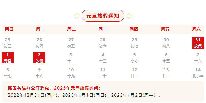 元旦放假通知