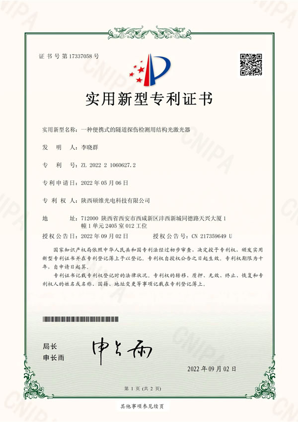 一種便攜式的隧道探傷檢測用結(jié)構(gòu)光激光器